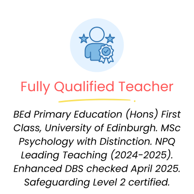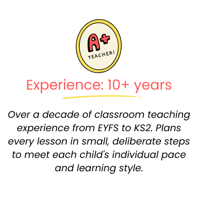 Cristy is a fully qualified Primary teacher with a decade of classroom experience spanning EYFS to KS2. She holds a First Class BEd in Primary Education from the University of Edinburgh, an MSc in Psychology with Distinction, and is currently completing her NPQ in Leading Teaching.